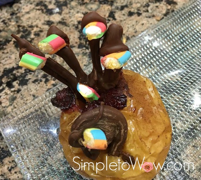 turkey-baked-apple-with-chocolate-and-candy-feathers