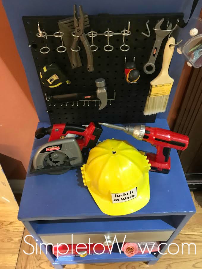 juju’s nightstand workbench metallic drawer top view