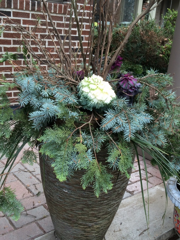 Almost two months later, the branches are still gorgeous and fresh with the fuzzy, though slightly withered blossoms still attached. I found an old globe stand and I fitted one of the metallic hoop arrangements into the semicircular base of the globe stand and have been enjoying the floral arrangement in my front hall.